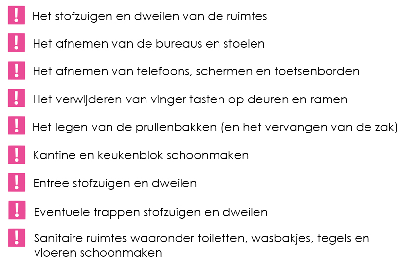 Wij richten ons voornamelijk op bedrijven en bieden helaas geen schoonmaakwerkzaamheden aan bij particulieren.
